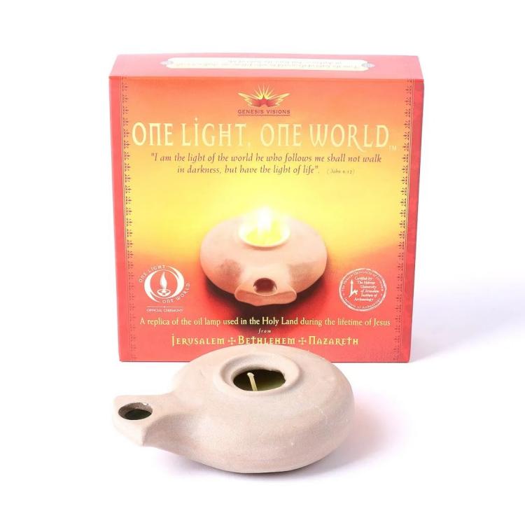 Exact reproductions of oil lamps used in the Holy Land duriing the lifetime of Jesus. They are handmade in Israel and each contains a candle for safety and ease of handling. The candle is scented with Holy Land aromatic plants and flower extracts.