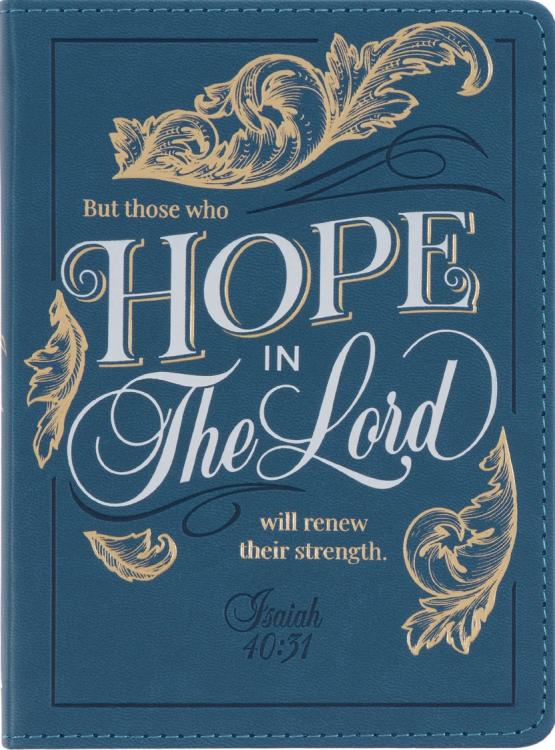 The Hope in the LORD Golden Leaf Blue Faux Leather Handy-size Journal makes a one-of-a-kind gift that will encourage a friend to keep going. The Hope in the LORD Golden Leaf Blue Faux Leather Handy-size Journal will bring solace to an ailing mom and let her spirits rise up on wings like eagles above the world’s worries.
