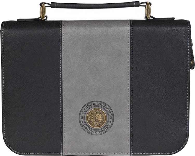 The boldly designed gray Courage LuxLeather Bible Cover powerfully reminds us, our loved ones, and our friends how the Lord wants us to be courageous at all times. It features a reference to Joshua 1:9. Whether we re heading to class, church, or small group study, this Christian Bible cover will protect their Bible from getting wet or muddy from the outdoor weather, and will also keep all their important materials together in one place, including important notes, pens, pencils, and more.