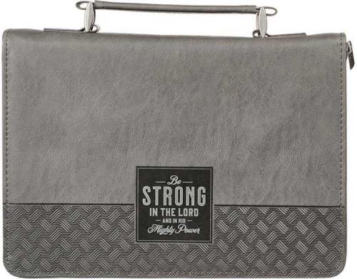 The Be Strong in the LORD Gray and Black Faux Leather Classic Bible Cover is the perfect Bible case to protect your son’s Bible. With its bold call to stand firm in the faith and a nudge to put on the full armor of God~ this Bible cover will encourage your son to stand for truth.”