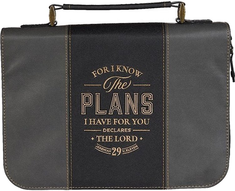 The exciting message of The Plans Black and Charcoal Faux Leather Classic Bible Cover will comfort your graduate as he embarks on his college journey. This gorgeous Bible case will remind him that God has a good plan for his life.