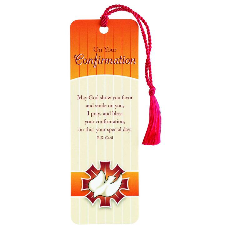 Finished with a red tassel cord, this bookmark is a great small gift for a new Confirmand on his or her special day. Front has attractive dove design and this poem: “”On Your Confirmation – May God show you favor and smile on you, I pray, and bless your confirmation, on this, your special day.”” Bookmark is clear laminated for extra durability; back side has To and From spaces for writing in names. Size is 2″” x 6″”. Verse by R.K. Cecil, copyright Dicksons