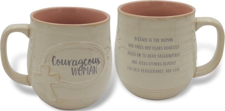 Handcrafted stoneware mug with raised design, words of inspiration for a very special woman