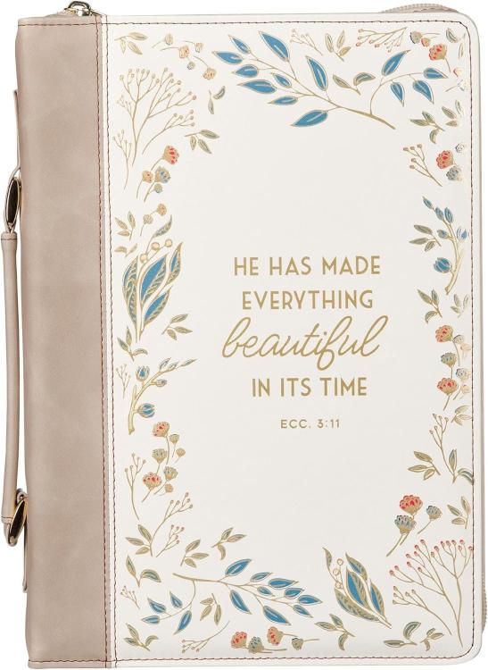 Remind yourself to trust that there is beauty and purpose in all things every time you reach for the Everything Beautiful Taupe Faux Leather Bible Cover. This stunning Bible cover will protect your precious Bible and remind you that even if you cannot see the outcome~ it has a place in God’s grand plan for your life.