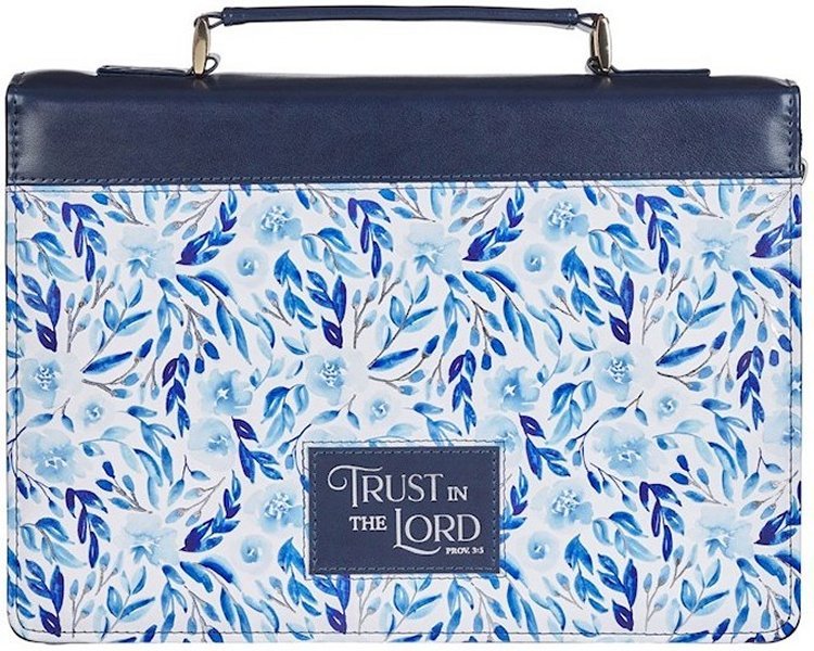 Let the gentle flutter of the flowers and leaves on the Trust in the Lord Blue Botany Faux Leather Bible Cover remind you to place your trust in the Lord. Just as the leaves do not resist the wind~ your heart and mind should surrender to the prompting of the Holy Spirit. This lovely Bible cover will remind you to set your mind on the guidance of the Lord and grow in trusting and discerning His will.