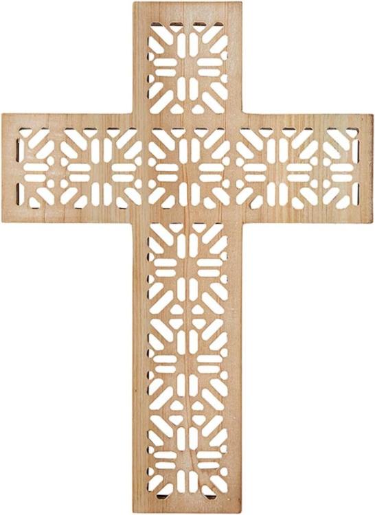 Add a touch of serenity and grace to your space with our beautiful wood hanging cross.