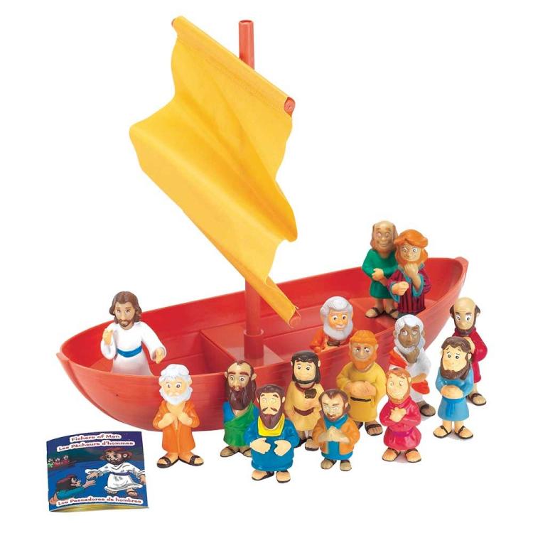 Children bring the story of Jesus’ and the 12 Apostles to life with this charming play set. The complete collection features a mini storybook describing the Jesus with his Apostles on the Sea of Galilee and 14 toy pieces ideal for little hands to play and learn.