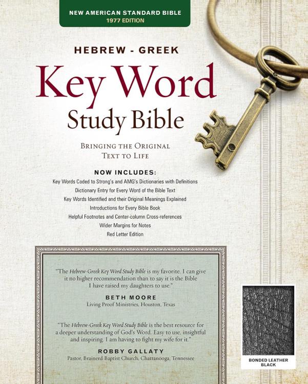 There are times when a Greek or Hebrew word has a distinct meaning that seriously affects the proper interpretation of Scripture. Unless you are familiar with these languages, you will not be able to determine what word in the original text was used or the differences between these words-until now.The Hebrew-Greek Key Word Study Bible identifies the key words of the original languages and presents clear, precise explanations of their meaning and usage. Those who love God’s Word will treasure this Bible, for it contains a whole library of biblical helps within its covers. NOW INCLUDED* Wider Margins on Pages of the Bible Text* Key Words in the Biblical Text Coded to Strong’s Numbers* New Word Studies with AMG’s Annotated Strong’s Dictionaries* Red Letter Edition of the New American Standard BibleBONDED LEATHER BLACK INDEXED