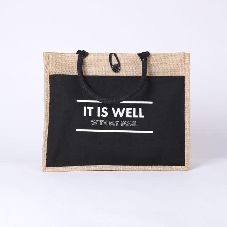 The tote bag also features jute drawstrings with a front button closure, ensuring that your belongings are secure while you re on the go. Whether you re carrying books, groceries, or your favorite beach essentials, this tote bag has got you covered.