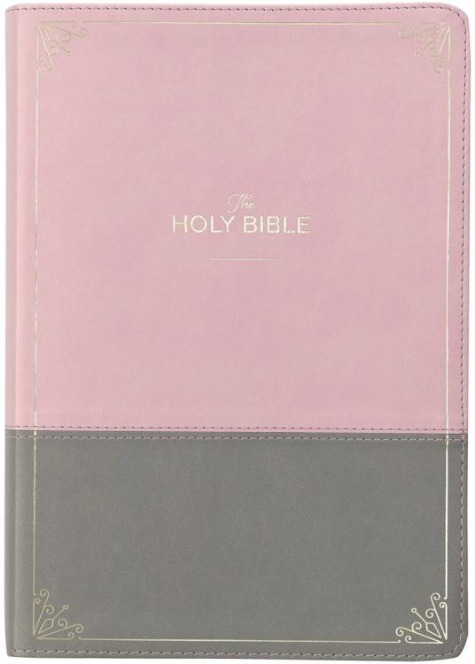 The sleek modern design of the Pink and Gray Faux Leather Full-size Super Giant Print King James Version Bible with Thumb Index is the perfect Bible for the woman with modern style who appreciates the contributions of the past. This Bible features the Classic King James Version text in an updated jacket printed in a Super Giant Print font.