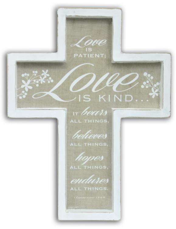 Framed MDF crosses feature printed facings with a rustic look and traditional sentiments.