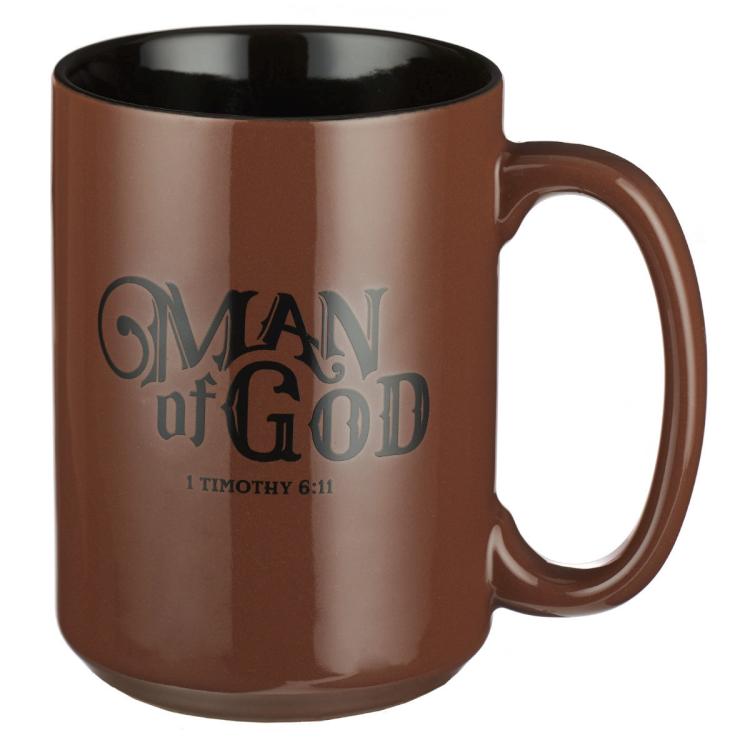The empowering verse for a special man in your life to live by from 1 Timothy 6:11, But you, man of God, flee from all this, and pursue righteousness, godliness, faith, love, endurance, and gentleness is boldly featured on the brown coffee mug, Man Of God Mug. Make your husband, dad, uncle, son or friend feel loved and appreciated by giving this Christian coffee mug for Father s Day, Christmas, graduation or another important milestone in his life. When he is sipping his favorite hot beverage, the verse on the back of the 1 Timothy 6:11 Coffee Mug will inspire him to keep growing as a man of God and leading his family in the ways of Christ.