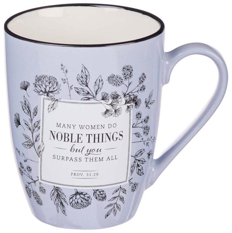The Many Women Do Noble Things Ceramic Mug celebrates the woman who rises above the norm to be a shining example for others. “Noble” isn’t a word often used today, but it means to have fine personal qualities or high moral principles. In Proverbs 31, the Bible praises such a person by calling her a virtuous woman, and this ceramic mug will sing her virtues every day she uses it.