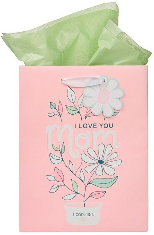 Wrap your special gift in the I Love You Mom Pink and White Daisy Medium Gift Bag and let her know that you appreciate her love, care, and prayers.