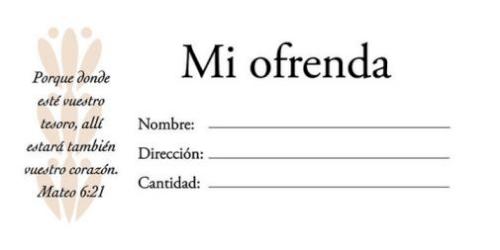“Special offering envelopes, in Spanish, are large enough to hold currency or a check without folding. Each envelope has space for name, address, amount given along with appropriate Scripture emphasizing the envelope’s particular use.Opens at top – Gummed flap “Kwik Open” feature? 6 1/4″ x 3″ Shrink-wrapped in packages of 100 Matthew 6:21 RVR 1960″
