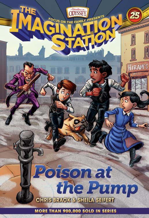 In Poison at the Pump, Patrick and Beth travel back in time in the Imagination Station to London, England, during the cholera epidemic of 1854. The cousins join Dr. John Snow, Florence Nightingale, and Curate Henry Whitehead in a thrilling scientific adventure to discover why this disease was killing people around Broad Street. In their quest for truth, Patrick finds himself a prisoner in a workhouse. Will he escape? Can the cousins help Curate Whitehead put together the clues to keep this deadly disease from spreading?