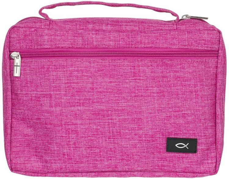 The Raspberry Pink Poly-canvas Value Bible Cover with Ichthus Patch is the prettiest pink value Bible case for a little girl to bring to church. This durable pink Bible case will make her feel just like her momma and allow her to carry her Bible in style.