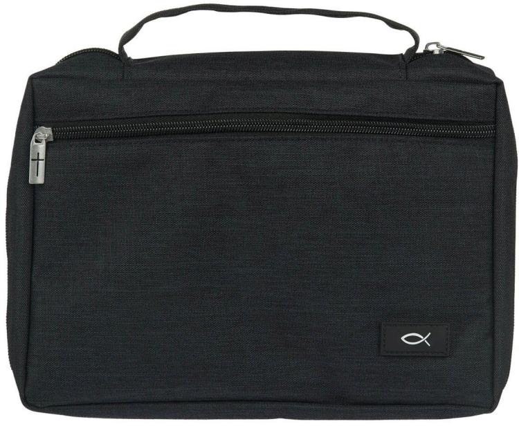 The Jet Black Poly-canvas Value Bible Cover with Ichthus Patch is designed to shield your cherished Bible from the wear and tear of daily use. It is the perfect choice for the man in your life – your husband~ father~ or a special someone. Its rugged durability and timeless design make it an ideal gift for men who take their Bibles on their daily commute.