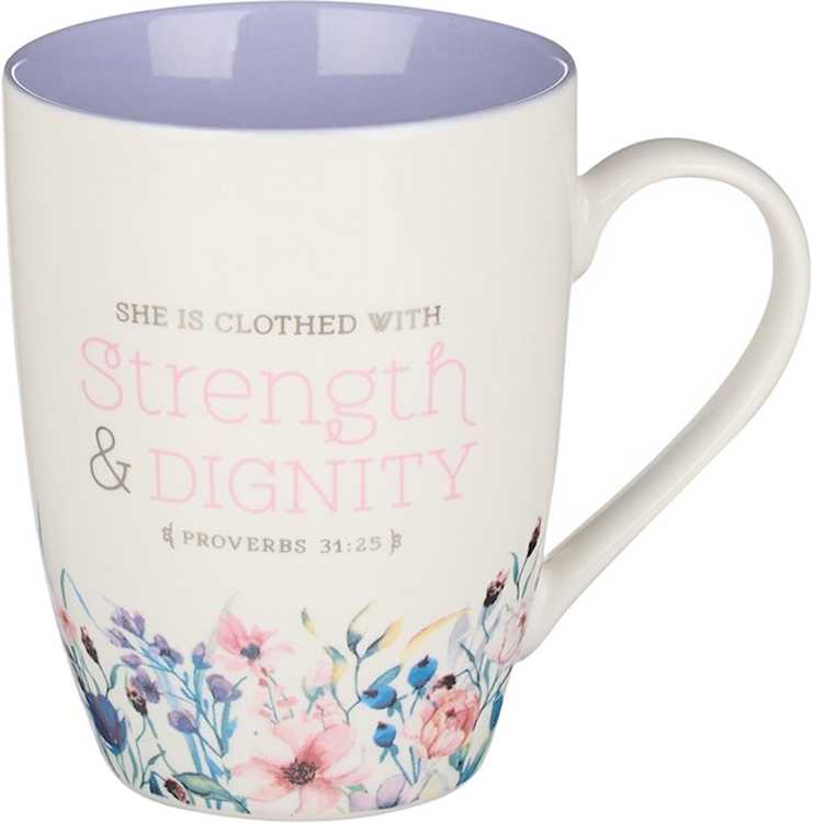 The Strength & Dignity Purple Floral Ceramic Coffee Mug is a sweet way to honor a friend or mentor who has helped you through a challenging time—a woman or friend who has been the voice of Christ in your life.