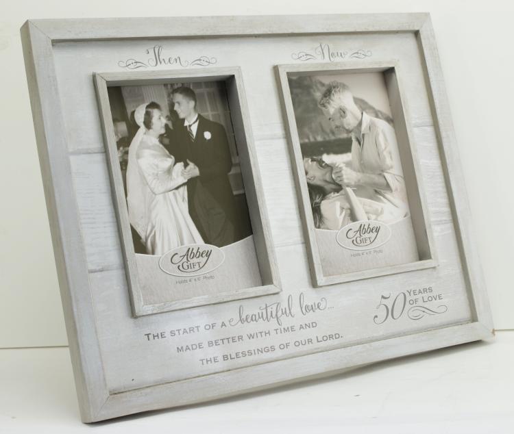 This rustic looking frame is crafted of MDF and designed to hold two 4″ x 6″ photos.