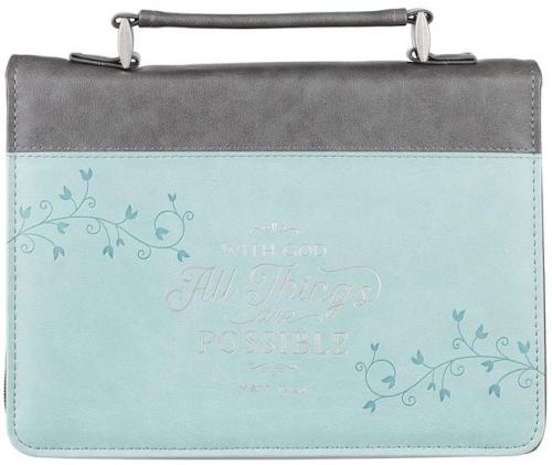 The All Things Are Possible Light Blue Faux Leather Classic Bible Cover is a stylish and contemporary way to carry your Bible to Sunday school or church.