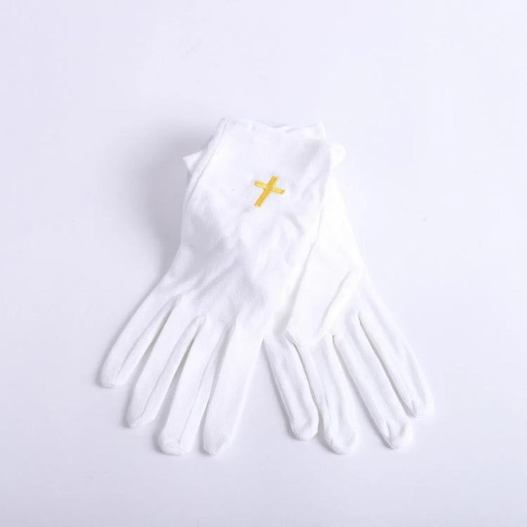 White gloves (with gold cross). Worship Gloves. Cotton gloves help protect hands and bells, and are a nice touch for special occasions.